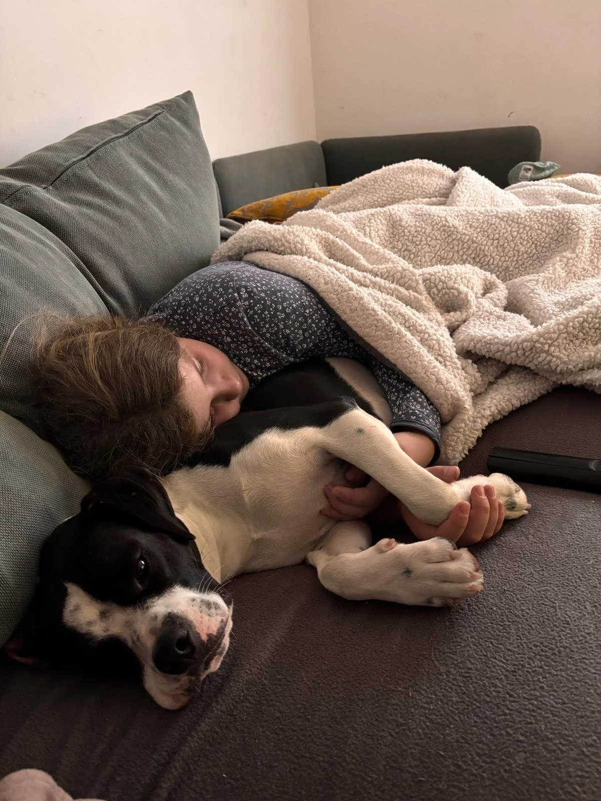 APONI ist etwas mutiger und drängt NAYO zurück wenn er Vertrauen fasst und den Kontakt zu Menschen sucht. APONI ist neugierig und sucht den Kontakt und hat er erst einmal Vertrauen gefasst, zeigt er sich total verschmust. Wir haben das Gefühl APONI denkt, ihn beschützen zu müssen, aber manchmal ignoriert er das und kommt dann zu einem um sich streicheln zu lassen.